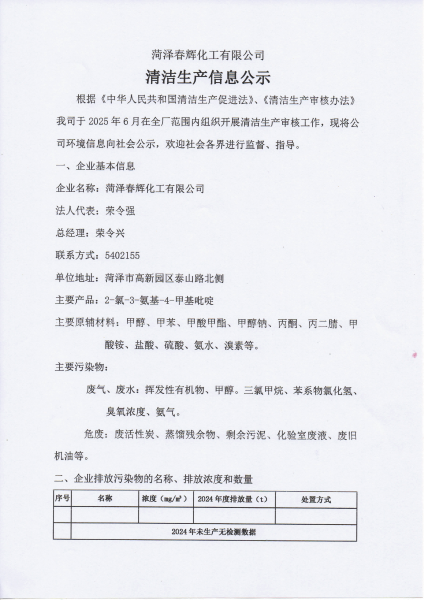清潔生產(chǎn)信息公示
